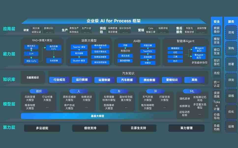 端到端的一站式AI工作空间深度融合了从企业战略规划到日常经营的全流程业务板块,,定向解决车企内部领域多、、、部门多、、、、链条长、、、、场景碎片化等难题,,,,支持车企快速构建以AI为核心的生产力写作体系,,实现任务执行与AI能力的无缝集成与交互